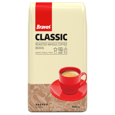 Bravos classic szemes kávé 1kg Hivatalos magyarországi forgalmazótól. Leírás: A Bravos Classic termékcsalád, megbízható minősége és versenyképes ára folytán méltán a legnépszerűbb szereplője a hazai háztartásoknak. A klasszikus pörkölésnek köszönhetően magas a koffeintartalma, ezért eszpresszóként és hosszú kávéként is ideális a fogyasztása.