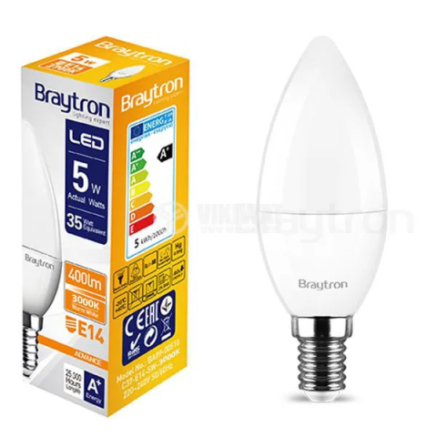 A Braytron® LED izzók E14 alappal, 5 W-os fogyasztású és C37 alakú (gyertya típusú) elsősorban dekoratív használatra készültek lakó-, szálloda- és irodaházakban. Közvetlen helyettesítői a hagyományos izzólámpáknak 35W/40W-ig. A gyertyaszerű léggömb form