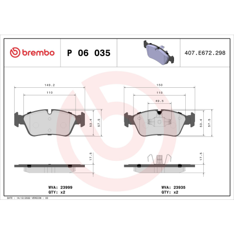1 kép BREMBO fékbetétkészlet, tárcsafék BREMBO P 06 035