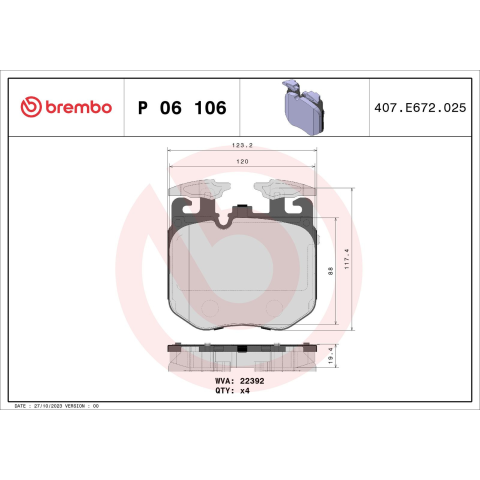 1 kép BREMBO fékbetétkészlet, tárcsafék BREMBO P 06 106