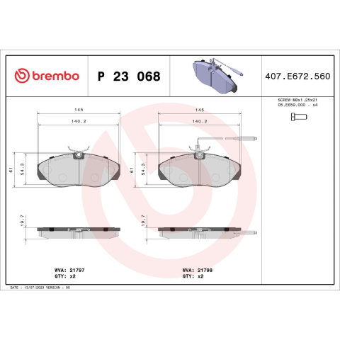 1 kép BREMBO fékbetétkészlet, tárcsafék BREMBO P 23 068