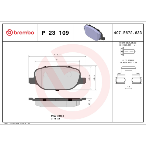 1 kép BREMBO fékbetétkészlet, tárcsafék BREMBO P 23 109