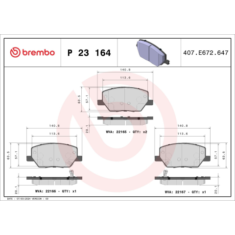 1 kép BREMBO fékbetétkészlet, tárcsafék BREMBO P 23 164