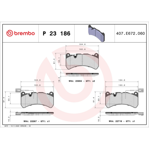 1 kép BREMBO fékbetétkészlet, tárcsafék BREMBO P 23 186