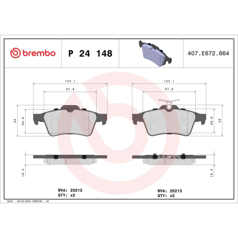 1 kép BREMBO fékbetétkészlet, tárcsafék BREMBO P 24 148