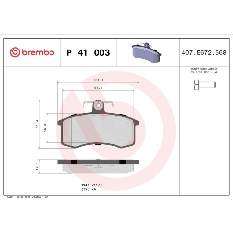 1 kép BREMBO fékbetétkészlet, tárcsafék BREMBO P 41 003