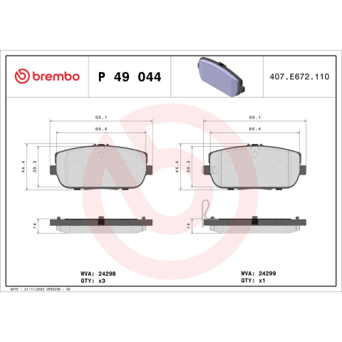 1 kép BREMBO fékbetétkészlet, tárcsafék BREMBO P 49 044
