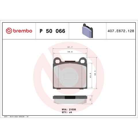 1 kép BREMBO fékbetétkészlet, tárcsafék BREMBO P 50 066