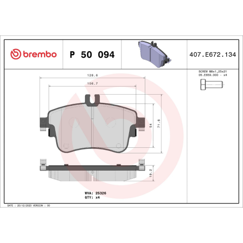 1 kép BREMBO fékbetétkészlet, tárcsafék BREMBO P 50 094