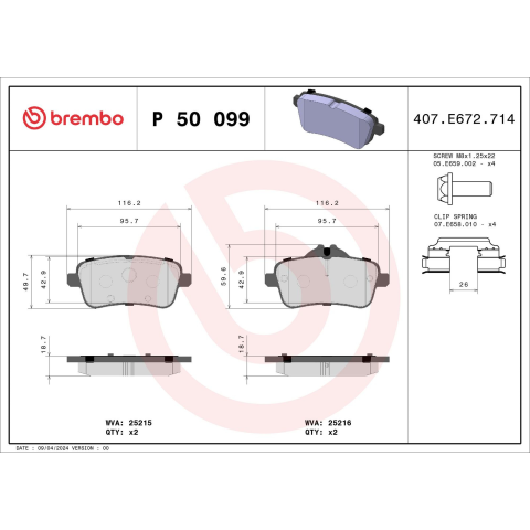1 kép BREMBO fékbetétkészlet, tárcsafék BREMBO P 50 099
