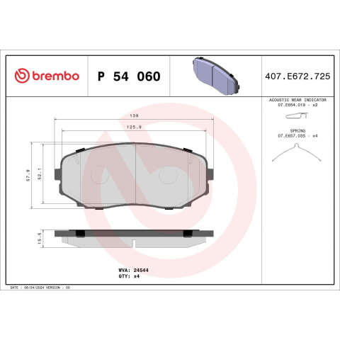 1 kép BREMBO fékbetétkészlet, tárcsafék BREMBO P 54 060