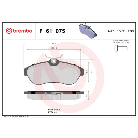 1 kép BREMBO fékbetétkészlet, tárcsafék BREMBO P 61 075