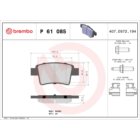 1 kép BREMBO fékbetétkészlet, tárcsafék BREMBO P 61 085