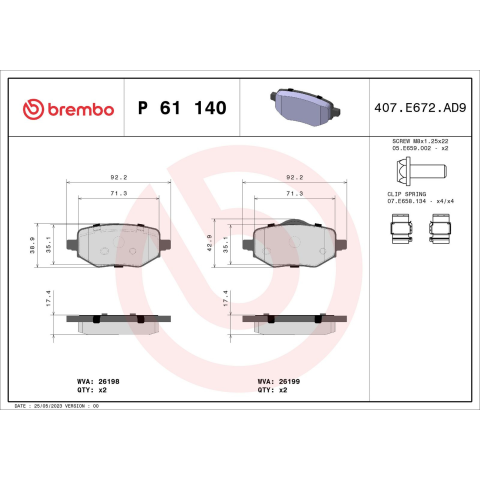 1 kép BREMBO fékbetétkészlet, tárcsafék BREMBO P 61 140