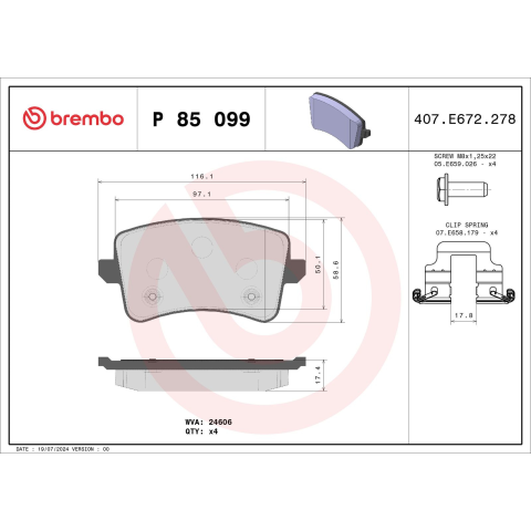 1 kép BREMBO fékbetétkészlet, tárcsafék BREMBO P 85 099X