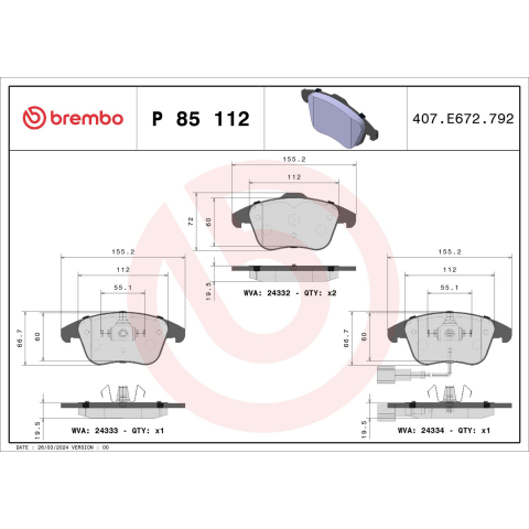 1 kép BREMBO fékbetétkészlet, tárcsafék BREMBO P 85 112