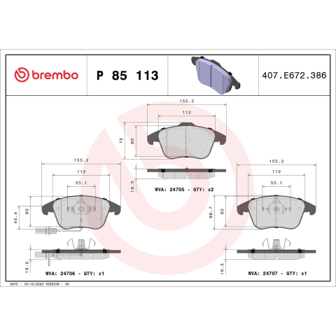 1 kép BREMBO fékbetétkészlet, tárcsafék BREMBO P 85 113X
