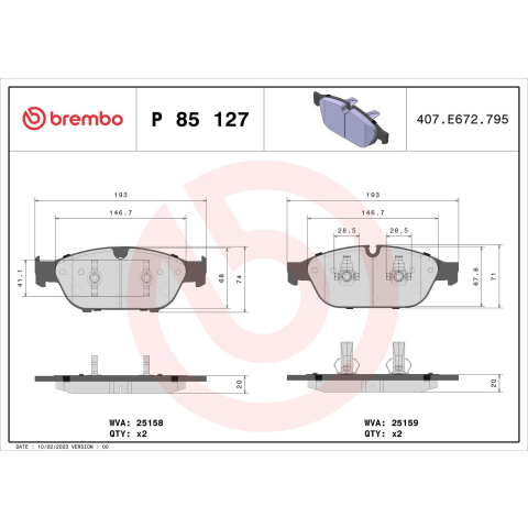 1 kép BREMBO fékbetétkészlet, tárcsafék BREMBO P 85 127