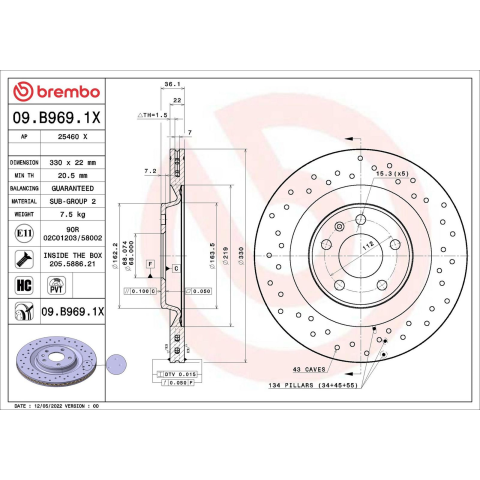 1 kép BREMBO féktárcsa BREMBO 09.B969.1X