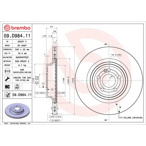 1 kép BREMBO féktárcsa BREMBO 09.D984.11