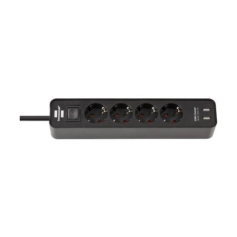 1 kép Brennenstuhl 1153240006 Elosztó kapcsolóval 4 részes Fekete Védőérintkezős 1 db (1153240006)