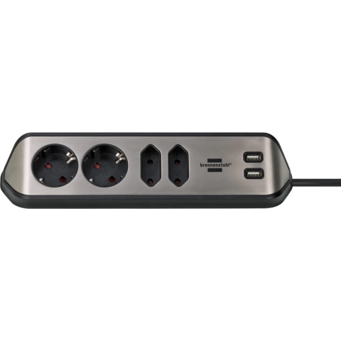 1 kép Brennenstuhl 1153590410 Elosztó 4 aljzat 2x USB 2m fekete-ezüst