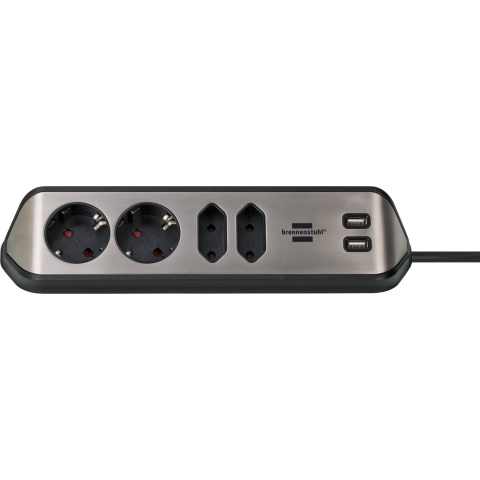 1 kép Brennenstuhl Estilo 4 aljzatos elosztó USB töltővel 2m - Ezüst