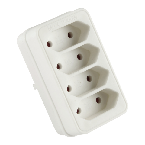 Átalakító, 3 csatlakozóaljzat, földelt, 90 fokban elforgatott