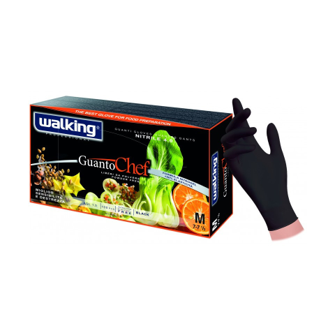 Brenta Guanto Chef: A Walking fekete, nitriles konyhai séfkesztyűje a professzionális egyszer használatos kesztyűk forradalmát képviseli. Egyesíti a maximális rugalmasságot és az érzékenysége.Rendkívül kényelmes és könnyű használni, ezáltal viselője ü