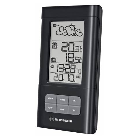 Bresser TemeoTrend LB RC Weather Station Compact weather station with an elegant design The TemeoTrend LB is a compact weather station in a timelessly elegant design. All control buttons are located on the front. All the relevant data can be read quickly from the clearly arranged display. It also features a radio-controlled clock with alarm function. A jewel on any desk or wall. Features: Compact weather station with an elegant design Indoor and outdoor temperature in °C/°F Min/max memory for