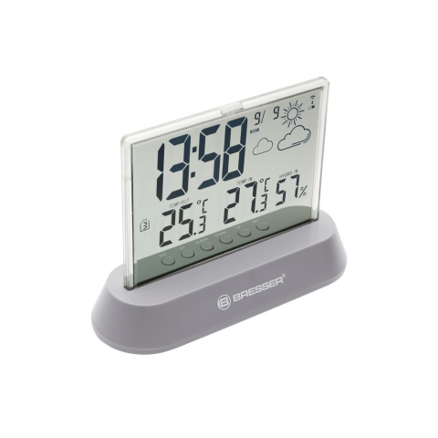 Bresser Translucidus RC időjárás-állomást Tájékoztat az időjárásról és a hőmérsékletről Nagy számjegyek kombinációja futurisztikus átlátszó kijelzőn egyszerű és elegáns talapzattal – ez különbözteti meg a Bresser Translucidus RC időjárás-állomást a hasonló eszközöktől. Az áttetsző LCD-n keresztül könnyen láthatók a gombok, amelyek a ház hátoldalán vannak elrejtve. A DCF idő nagy számjegyekkel, illetve a külső és belső hőmérséklet megjelen