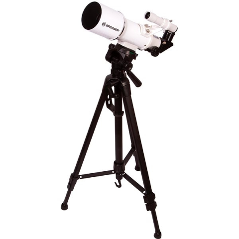 Teleszkóp - 18 - 499× nagyítással, objektív átmérője 70 mm, gyújtótávolság 350 mm, lencse belső átmérője 31,7 mm, csillagászati tartozékok, objektív sapka, tripod, cserélhető okulár, optikai prizma, kereső, csillagászat kiegészítők, objektív sapka és tripod a csomag része, azimut összeszerelés, mérete 170 × 65 × 65 cm (Ma×Sz×Mé), tömege 2300 g, fehér és fekete kivitel A Bresser Classic 70/350 teleszkóp rövid, 350 mm-es fókusztávolsággal ideális utaz