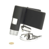 LCD kijelzős biológiai mikroszkóp A Bresser LCD mikroszkópja egy figyelemre méltó újítás a mikrovilág megfigyelése terén. Okulárja helyett 88 mm átmérőjű LCD kijelzőn (3.5") figyelhetjük az általa adott képet. Objektívjei 50x-100x-500x-os nagyítást adnak, melyet 4x-es digitális zoom használatával akár 2000x-osra is megnövelhetünk. Az eszköz 5 megapixeles kamerájával (interpolálva akár 3264x2448 felbontású) képet képes rögzíteni, melyet külső SD kárty