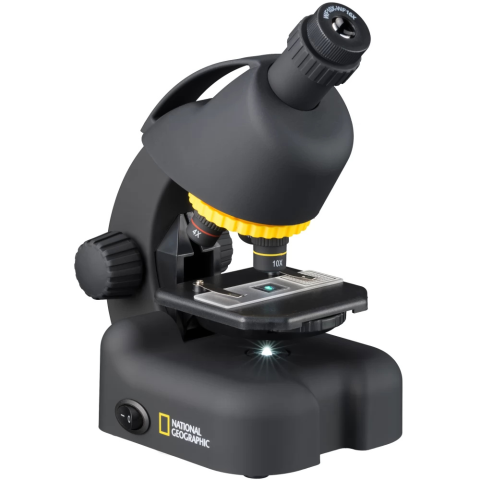 Bresser National Geographic 40–640x mikroszkóp okostelefon adapterrel Mikroszkóp gyerekeknek. Kísérletező készletet tartalmaz. Minták áteső fényben történő megfigyeléséhez. Nagyítás: 40–640х A Bresser National Geographic 40–640x mikroszkóp kifejezetten fiatal felfedezőknek készült. A mikroszkóp revolverfejjel van ellátva, amelynek az elforgatásával válthat a három fix nagyítási lehetőség közül 40x és 640x nagyítási tartományon belül. Az alsó LED-vi