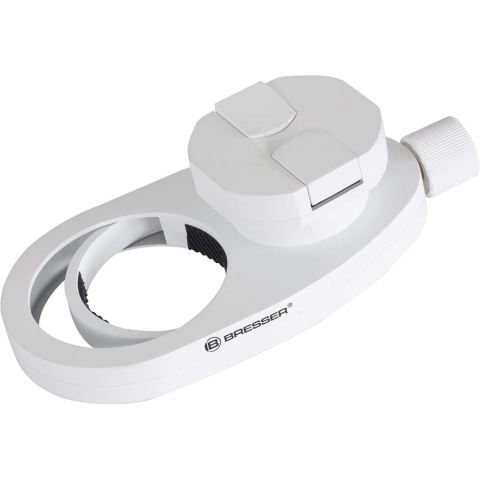 Bresser okostelefon-adapter Universal adapter for mounting smartphones to your spotting scope, telescope or microscope Take photos with your smartphone through your spotting scope, microscope or telescope. It’s a child's play with the Bresser Smartphone Adapter. Simply attach the adapter to the eyepiece holder of your optical device and then use all together as a telephoto lens for your smartphone camera. Now you can shoot distant objects as if they were up close or take photos through a micro