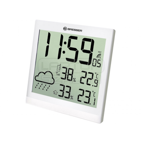 Bresser TemeoTrend JC LCD RC Weather Station (Wall clock), silver Radio-controlled Weather Station The Bresser TemeoTrend JC LCD Weather Clock has the worldwide first "ultra wide angle" (UWA) display. The large presentation and the broad viewing angle provide for an easy reading of the shown information from almost any position in the room. Always track indoor and outdoor temperatures and humidity and get the weather forecast for the coming 12 to 24 hours. ATTENTION The time set by the time sign