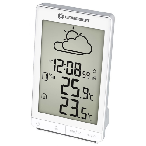 The Bresser TemeoTrend STX radio-controlled weather station shows on a clearly