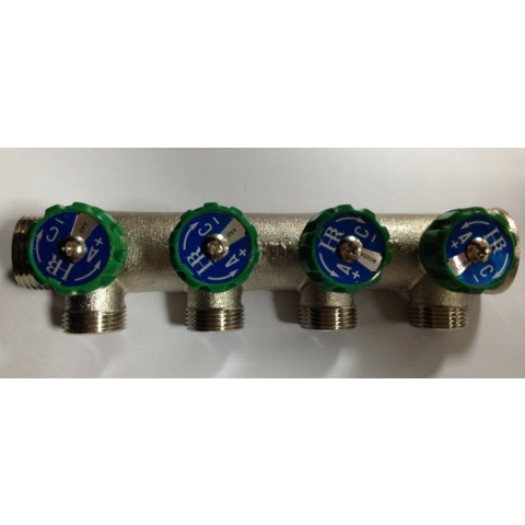 BRH osztó szelepes 1"-3/4" 4 körös, ideális megoldás lehet mind a fűtési rendszerünk mind a használati vizünk körökre bontásában. A BRH osztók tetszés szerint összeszerelhetőek egymással, ha több kört szeretnénk használni.
