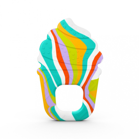 Kisbabád imádni fogja a jégkrém ihlette rágókát, melynek élénk márványos színe és vidám formája ámulatba ejtő. A könnyen megfogható kialakításnak köszönhetően, csöppséged megragadhatja a gofri tölcsér fogantyúját, és saját maga nyugtathatja a fájó ínyét f