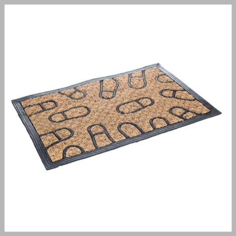 BRILANZ kókusz-gumi szőnyeg 40 x 60 cm 43987111Ez a kókusz-gumi szőnyeg ideális választás cipők tisztítására az általánosan használt épületbejáratokban. A szőnyeg BOOT motívuma praktikus és stílusos megoldást kínál a bejáratokra, miközben hatékonyan tisztítja a cipőket. A szőnyeg karbantartása egyszerű, porszívózással vagy kirázással könnyen tisztítható, így hosszú távon is praktikus megoldás.Jellemzők:✔ Szín: Fekete/barna✔ Anyag: Gumi/kókusz✔