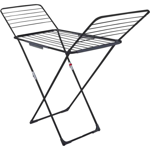 Az új, stabil Onyx ruhaszárító modern antracit színben 18 méter szárítási felületet kínál, ahová körülbelül két teljes mosógépnyi ruhát akaszthat. A lehajtható oldalfalak magassága 150 cm, így az oldalsó szárnyakra hosszabb ruhákat is felakaszthat. Praktikus kiegészítő a zoknik és apró tárgyak szárítására szolgáló tartóval. Nagy előnye a szárító stabil szerkezete és a könnyű mozgatáshoz szükséges 2 kerék.Műszaki adatok és specifikációk: