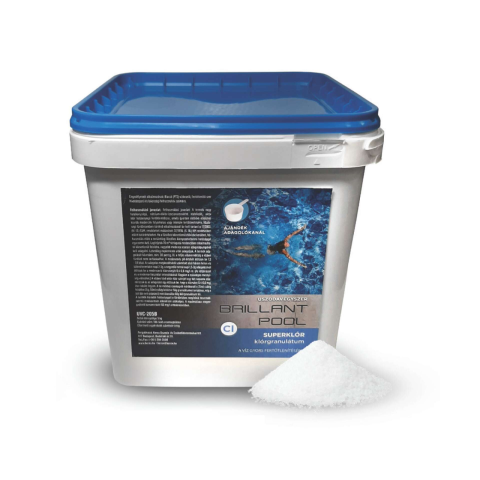 Brillant Pool Superklór granulátum 5kg: Gyorsan oldódó medenceklór a tiszta vízhez 🏊♀️ Biztosítsd medencéd kristálytiszta vizét ezzel a gyorsan oldódó klór granulátummal! A Brillant Pool Superklór 56%-os klórtartalommal rendelkezik, és nem emeli a p...