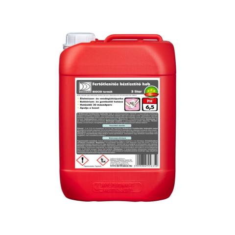 Brilliance® Fertőtlenítős kéztisztító hab 5 liter Brilliance® Fertőtlenítős kéztisztító hab 5 liter A Brilliance® Fertőtlenítős kéztisztító hab az élelmiszeriparban (HACCP) is használható fertőtlenítő hatással rendelkező folyékony szappan. Zsírvisszatá