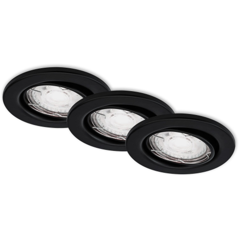 A fekete színű Brilo Sten LED-es süllyesztett lámpához egy GU10 foglalatú, 5 wattos, 460 lumen fénykibocsátású LED izzó is tartozik.A 3000 Kelvin színhőmérsékletű lámpa kellemes melegfehér színben ragyog, amely a lámpatest rugalmas spotjával egyedileg állítható be. Így a lámpával optimálisan világíthatók meg a lakóterek. A lámpa mérete 86 mm x 70 mm (Át x Ma), beépítési mérete pedig 68 mm (Át). A süllyesztett lámpa praktikus három darabos szettben kapha