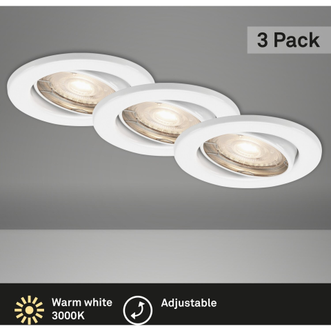 A süllyesztett LED-es lámpák ezen időtálló készlete fehér színű fémből készült, és könnyedén felszerelhető a különböző helyiségekbe. A spotlámpák kellemes, melegfehér (3000 K) fényt bocsátanak ki. Mivel a lámpatest forgatható, a lámpák optimálisan állíthatók be a kívánt megvilágításhoz. A csomag 3 darab energiatakarékos, GU10-es foglalatú izzót tartalmaz, amelyek egyenként 5 wattosak és 460 lumen fényerejűek. Az izzókat hosszú, akár 20 000 órá