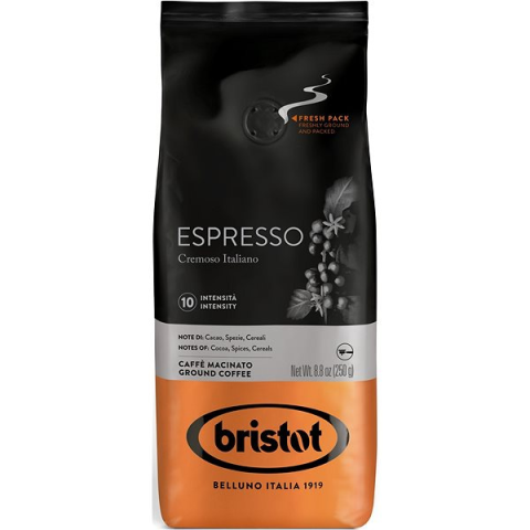 Kávé - őrölt, kávéfajták keveréke, hozzáadott aromaanyagok nélkül, származási hely Indonézia és Dél-Amerika, csomag tömege 250 g, allergének nélkül Sablon az ételek színének módosításáhozBristot Diamante Espresso kávé250 gA Bristot Diamante Espresso őrölt kávé a legjobb minőségű Arabica Brazil Alta Mogiana és finom indiai Arabica lassan pörkölt b