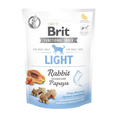 A Brit Care Dog Functional Snack Light Rabbit egy ízletes és egészséges jutalomfalat, melyet támogatja az egészséges emésztést.