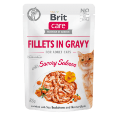 Brit Care Cat Fillets in Gravy with Savory Salmon 85 g macskaeledel termékleírás