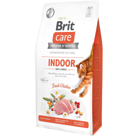 Brit Care Cat Grain Free Adult Indoor Anti-stress macskatáp 7kg macskaeledel termékleírás