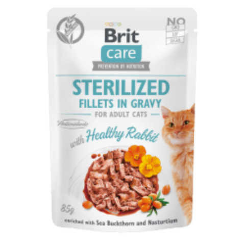 Brit Care Cat Sterilized Fillets in Gravy with Healthy Rabbit 85 g macskaeledel termékleírás